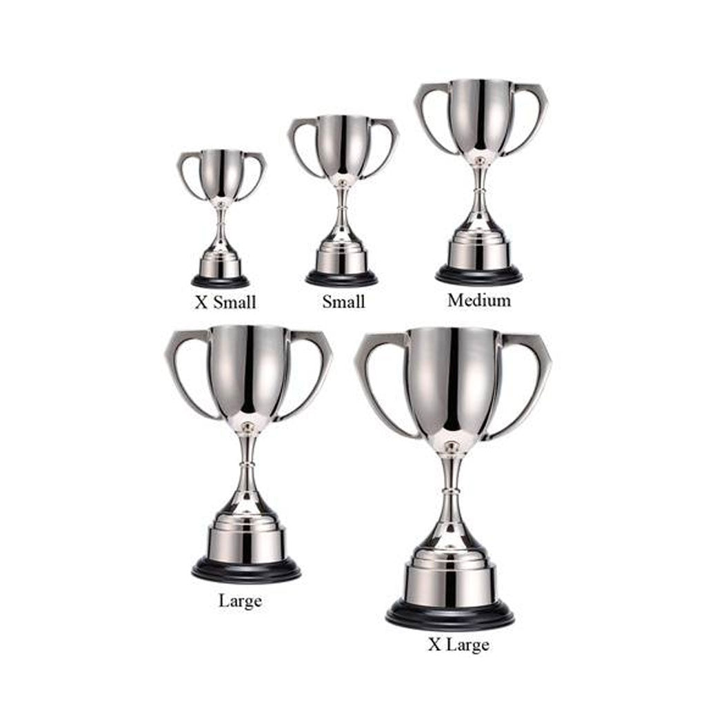 Olympia Trophy Cups are hand crafted from copper base metal and Nickel plated.